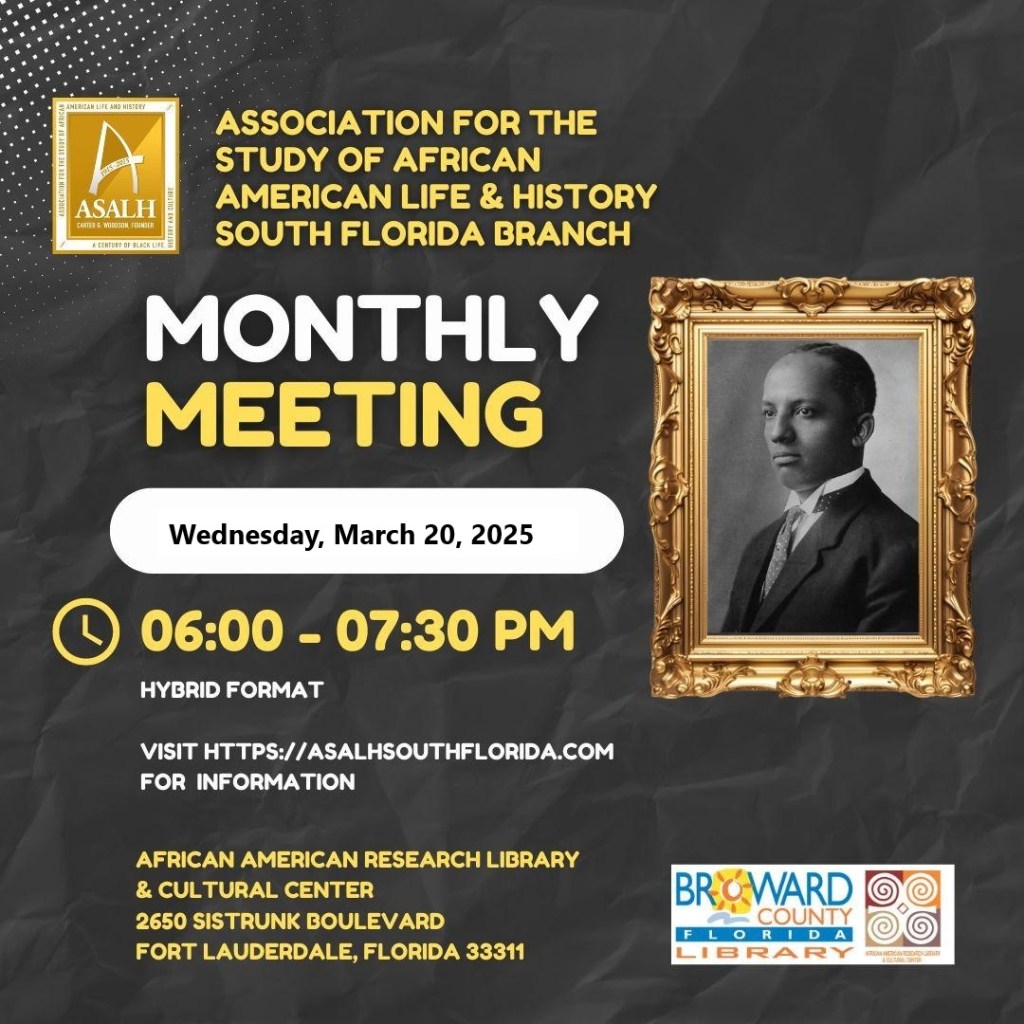 NEXT BRANCH MEETING on Zoom & at the African American Research Library and Cultural Center, 2650 Sistrunk Blvd., Fort Lauderdale, FL 33111