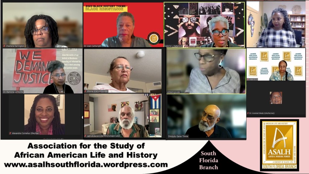 ASALH South Florida Members commemorate the birthday of Malcolm X at the African American Research Library and Cultural Center in Fort Lauderdale, Florida, on May 19, 2023.