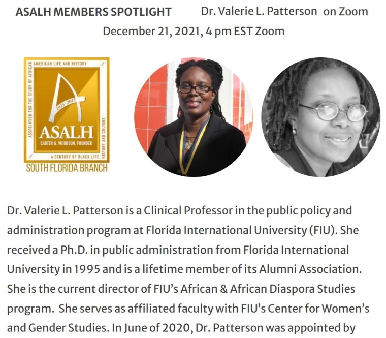 Dr. Valerie L. Patterson is a Clinical Professor in the public policy and administration program at Florida International University (FIU). She received a Ph.D. in public administration from Florida International University in 1995 and is a lifetime member of its Alumni Association. She is the current director of FIU’s African & African Diaspora Studies program. She serves as affiliated faculty with FIU’s Center for Women’s and Gender Studies. In June of 2020, Dr. Patterson was appointed by President Mark B. Rosenberg as one of three chairs of FIU’s Equity Action Initiative.